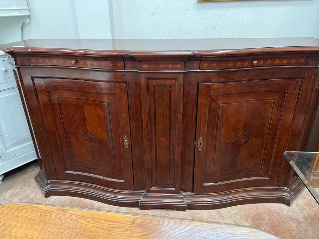 Credenza color legno bombata 2 ante e due cassettini.