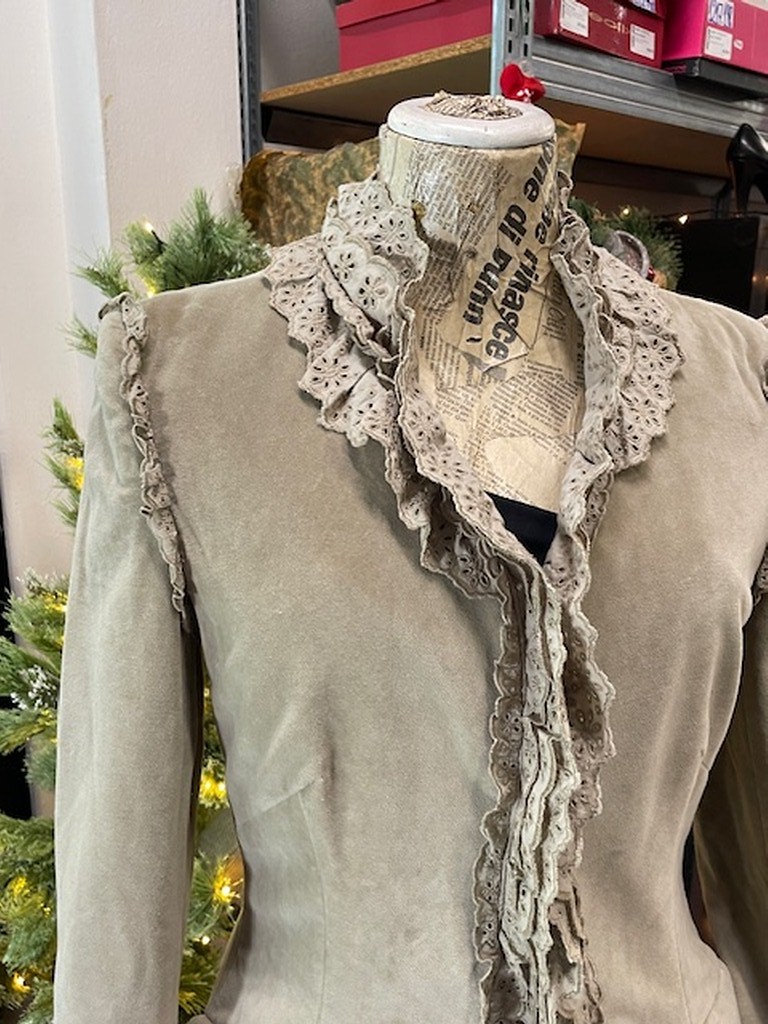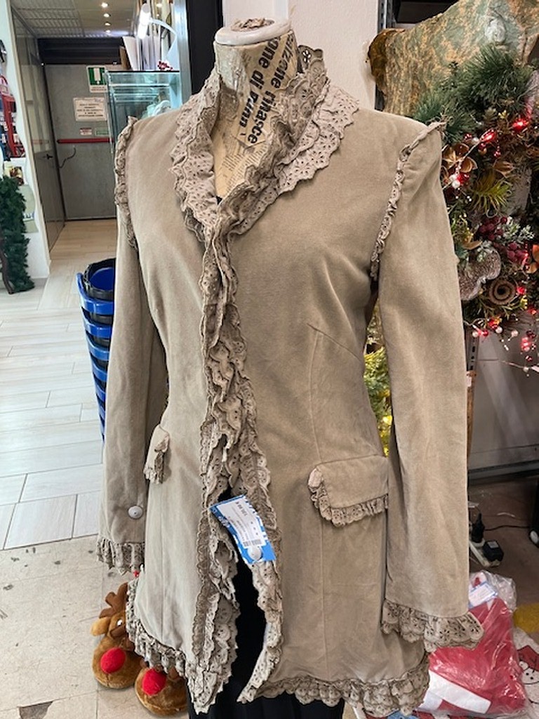 Giacca Lunga Ciniglia Beige Pizzo Sangallo D&g