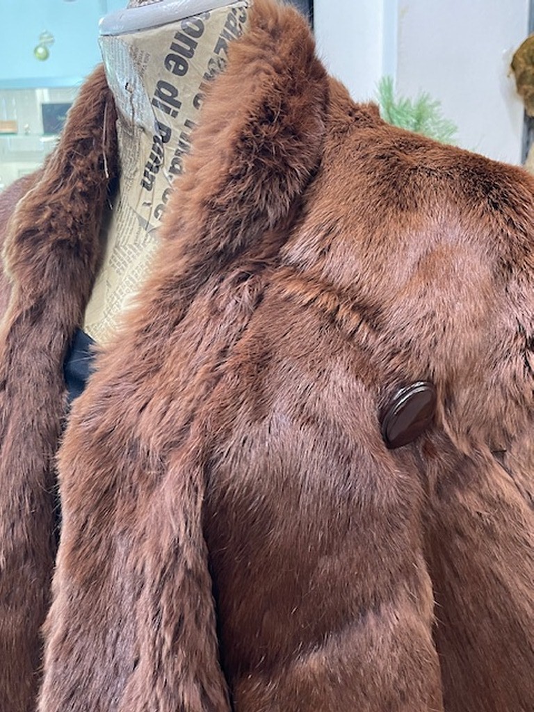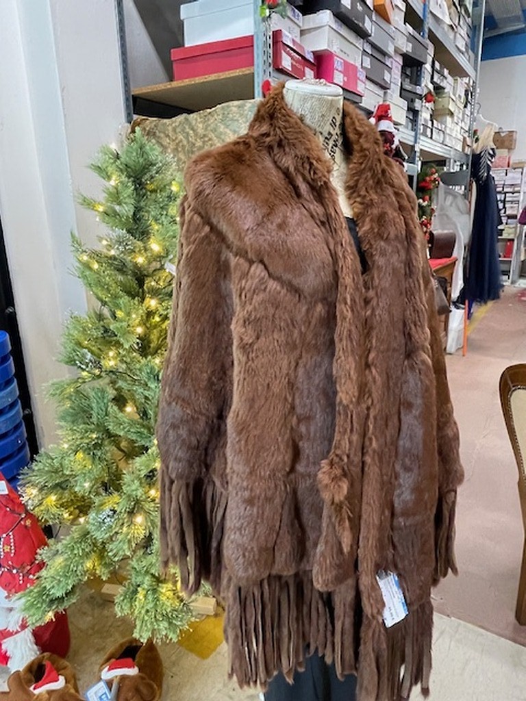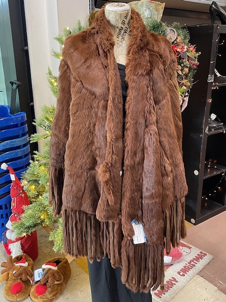 Mantella Marrone Frange Pelliccia Vera Tg 44