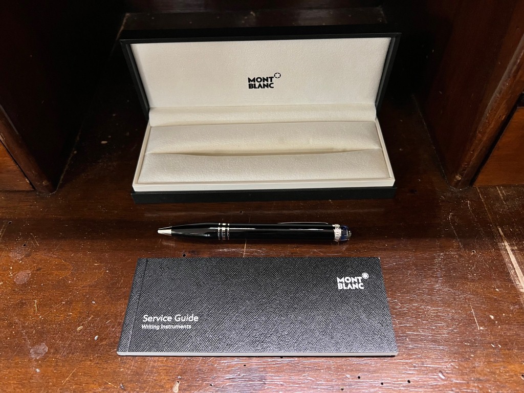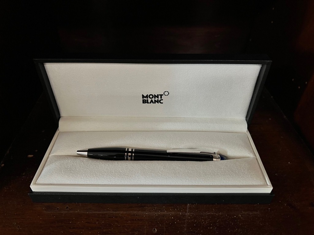 Penna a sfera nera inserti in metallo, Mont Blanc