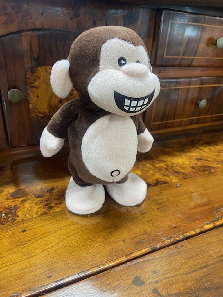 peluche interattivo a forma di scimmia identificabile come Clappy la Scimmietta nella versione che ripete ciò che dici