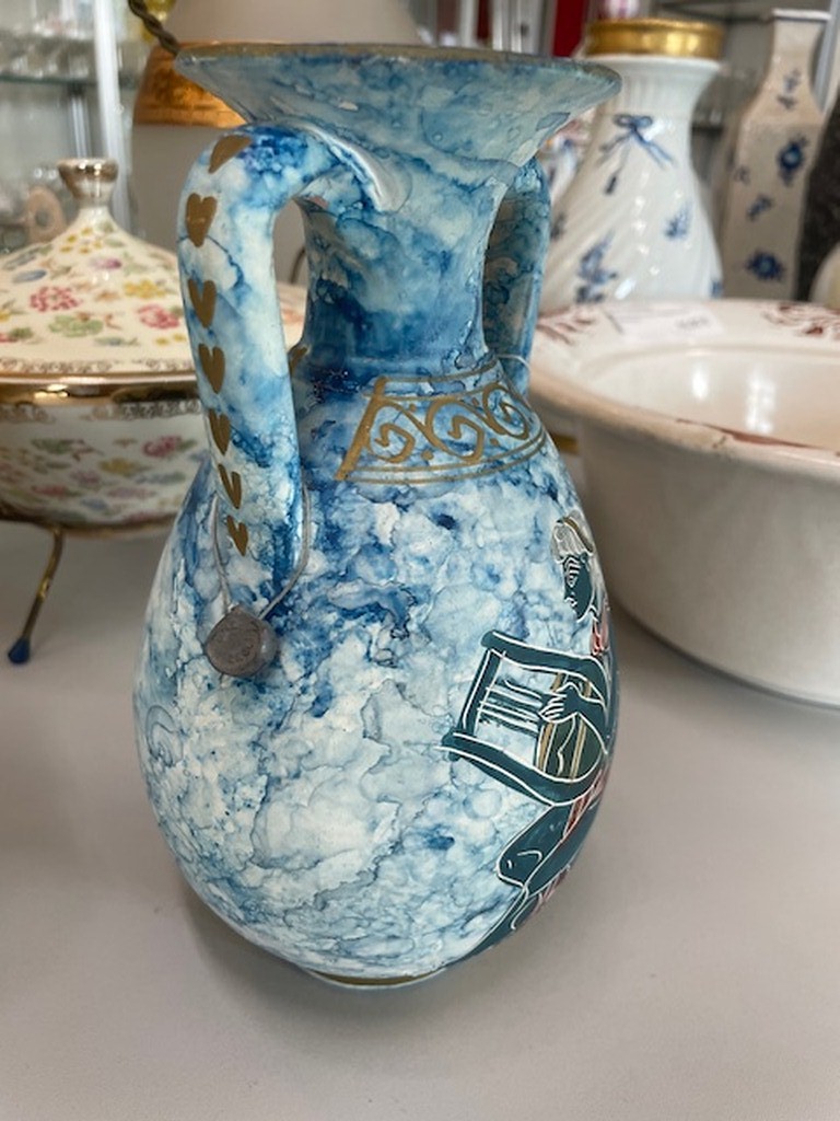 Vaso Ceramica Marmorizz Azzurro Stampe Greche