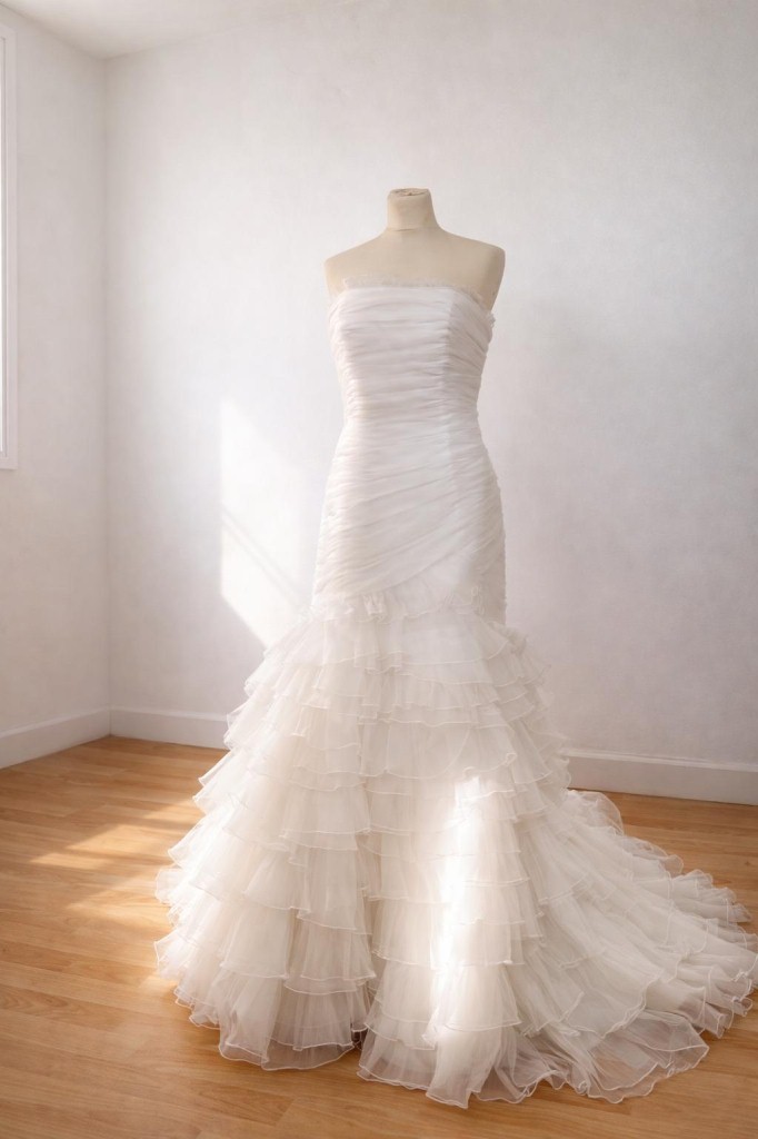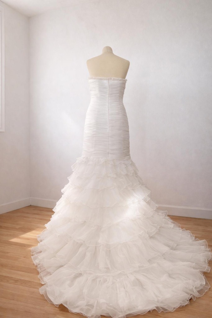 abito da sposa mezza sirena tulle gonna frappe corpetto arricciato