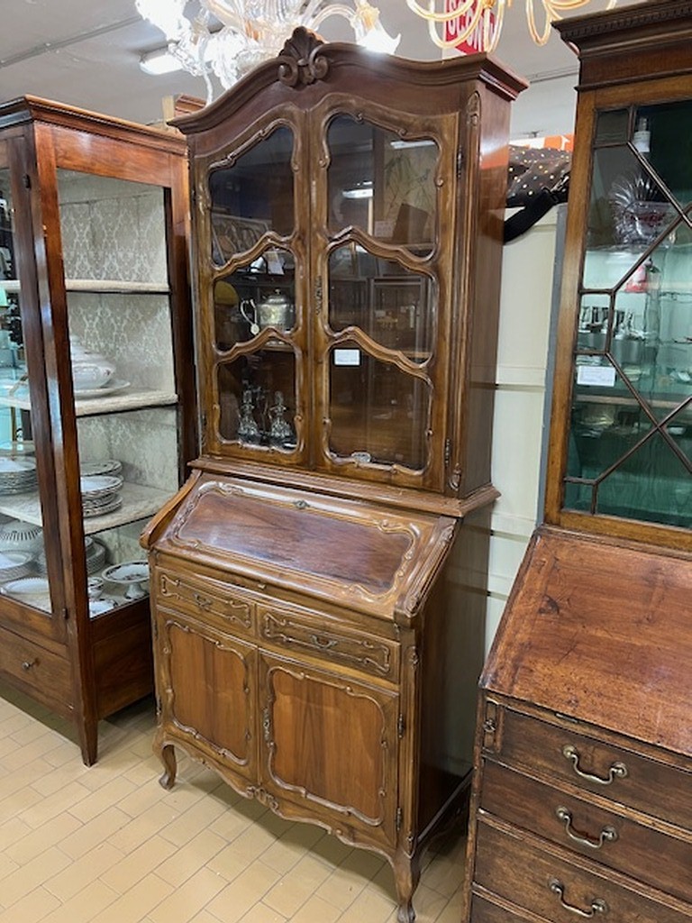 Vetrina vintage in legno con 2 ante e ribaltina.
